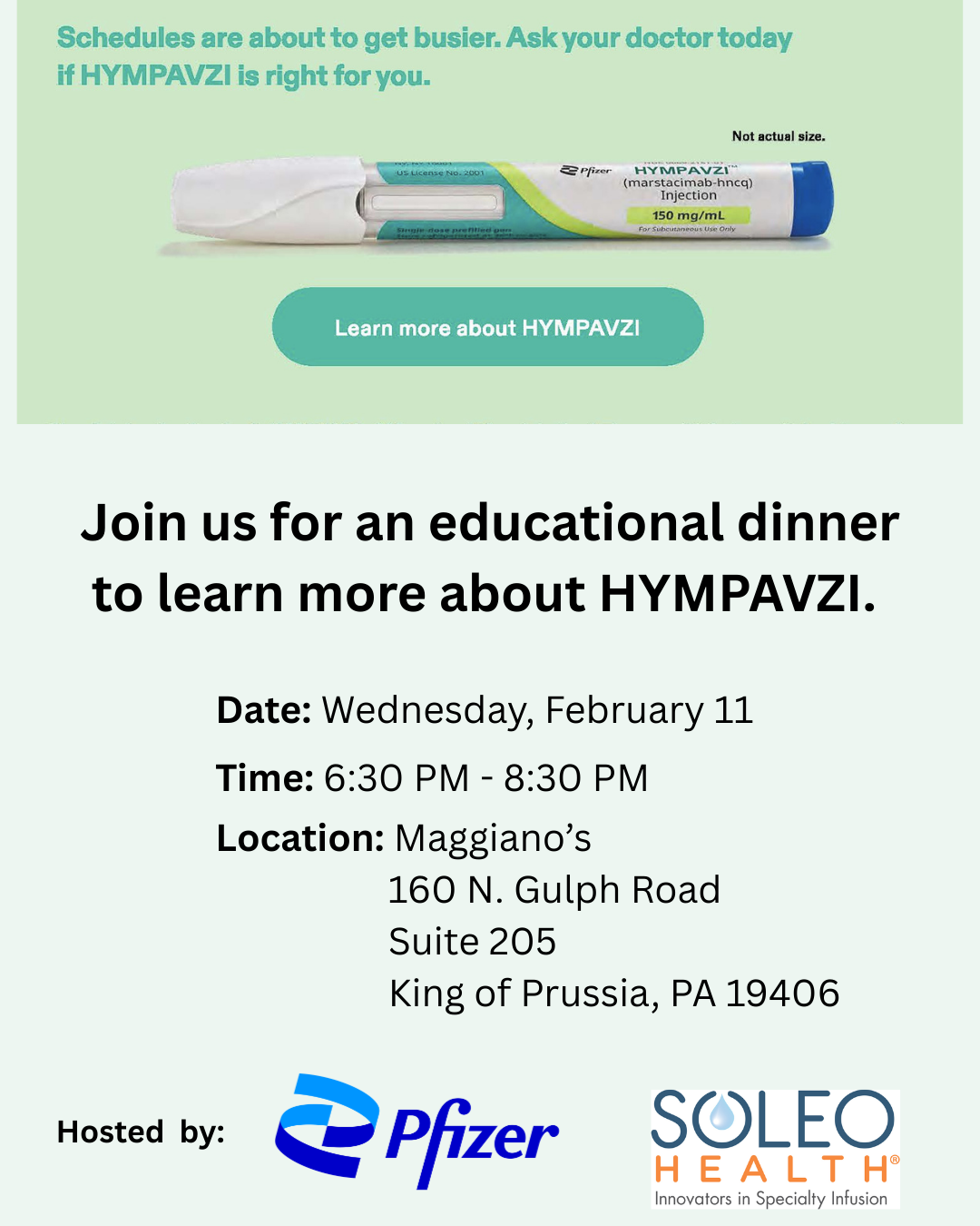 Discover Once Weekly HYMPAVZI – educational dinner