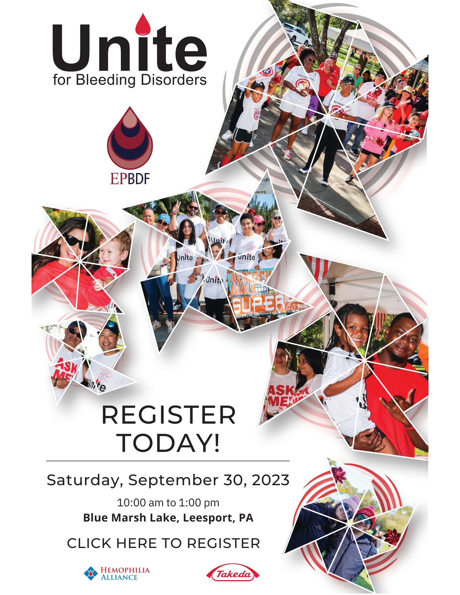 The Unite Walk For Bleeding Disorders will occur in over 40 cities across the country with one mission: to raise funds and awareness for bleeding disorders foundations, like EPBDF, to help provide education, support services, and advocacy in the bleeding disorder community.